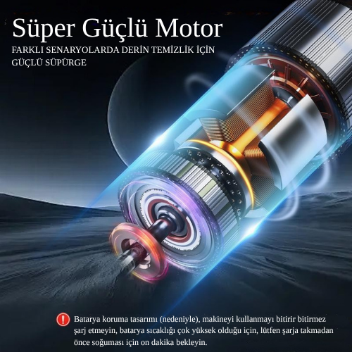 Güçlü ve kompakt tasarımıyla bu kablosuz süpürge, aracınızı ve evinizin en zor ulaşılabilir köşelerini zahmetsizce temizlemenizi sağlar.