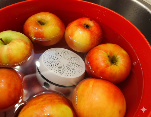 Cihaz çalışırken sudaki yoğun kabarcıklanmayı ve 'aktif oksijen' kokusunu fark edeceksiniz. İşlem bittikten sonra, özellikle pestisit yoğun gıdalarda (çilek, üzüm gibi) suyun yüzeyinde biriken yağımsı tabakayı (çözünen pestisit kalıntısı) görebilirsiniz.